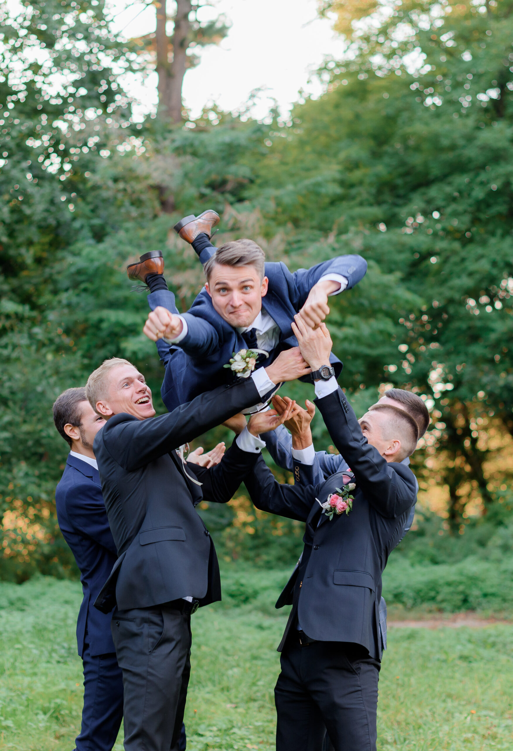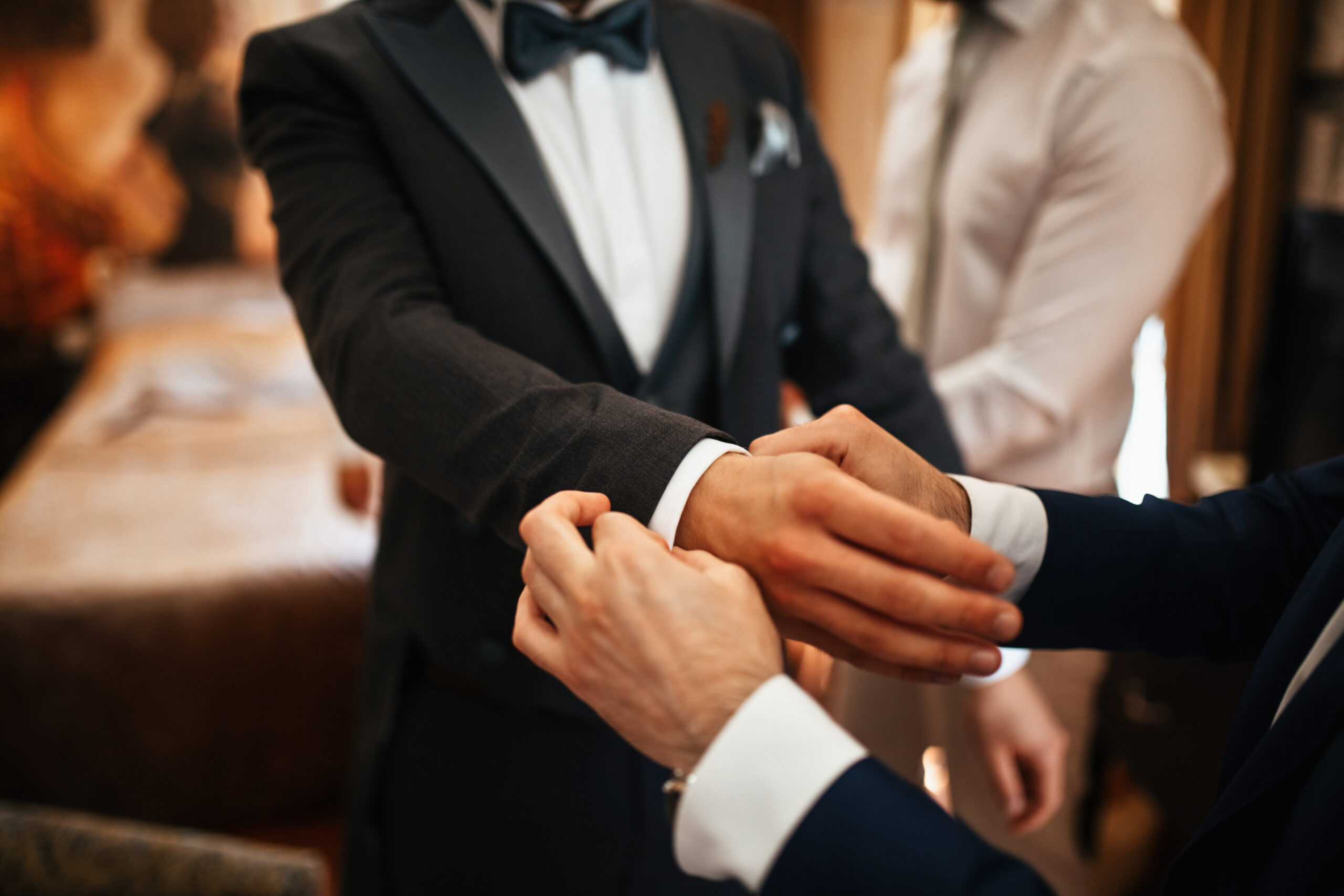 Keep your entire wedding party looking sharp and coordinated with Fifth Avenue Suit & Tux. Choose from our premium selection of suits and tuxedos, available to rent or buy. Our stylists ensure every fit is flawless, and even out-of-town groomsmen can join in easily with quick online measurements. Your wedding party will look as unforgettable as your big day.